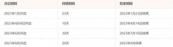手游:最新一次开启为2023年10月9号-10月24号。